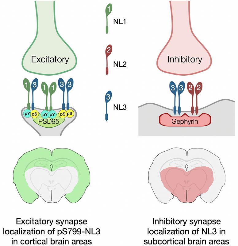 title = {Phosphorylation Determines Whether Neuroligin-3 is at Excitatory or Inhibitory Synapses in Different Regions of the Brain},